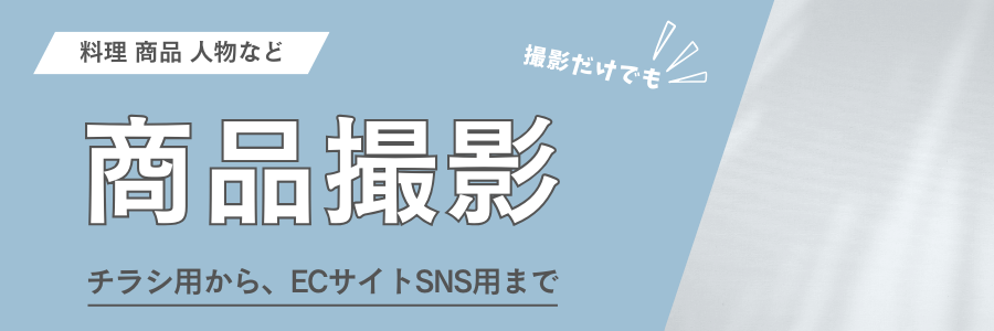 また、店舗や会社の外観内観、商品や料理の撮影、スタッフや代表者のポートレート撮影など、撮影も含めてトータルにサポートいたします。
