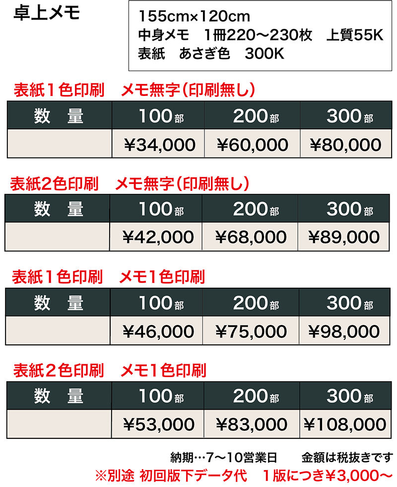 サイズはB6に近い「155mm×120mm」の1種類のみの展開。シンプルな仕様だからこそ、完全自社内生産でコストを抑えてご提供しています。