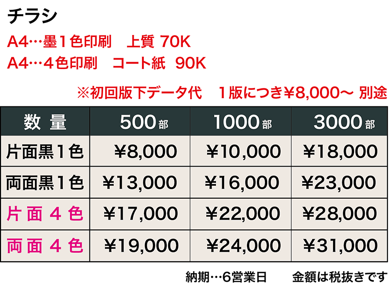 当社では、お店のセールチラシからサークルや地域コミュニティー等のイベント案内チラシ、クリニックや会社、お教室の紹介用パンフレット(二つ折り・三つ折り)まで、幅広く対応いたします。
