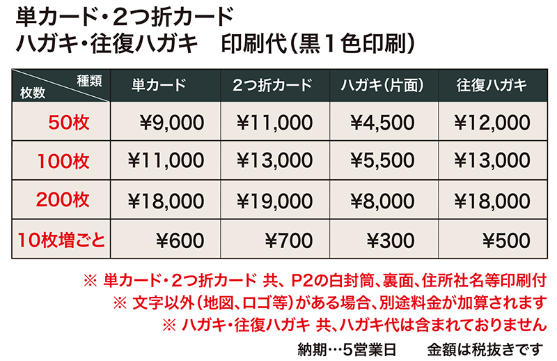 また同窓会やご法要の案内状、往復はがきの印刷もお任せください。