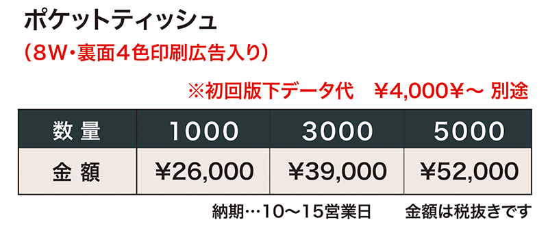 企業様に人気のノベルティーの定番「ポケットティッシュ」